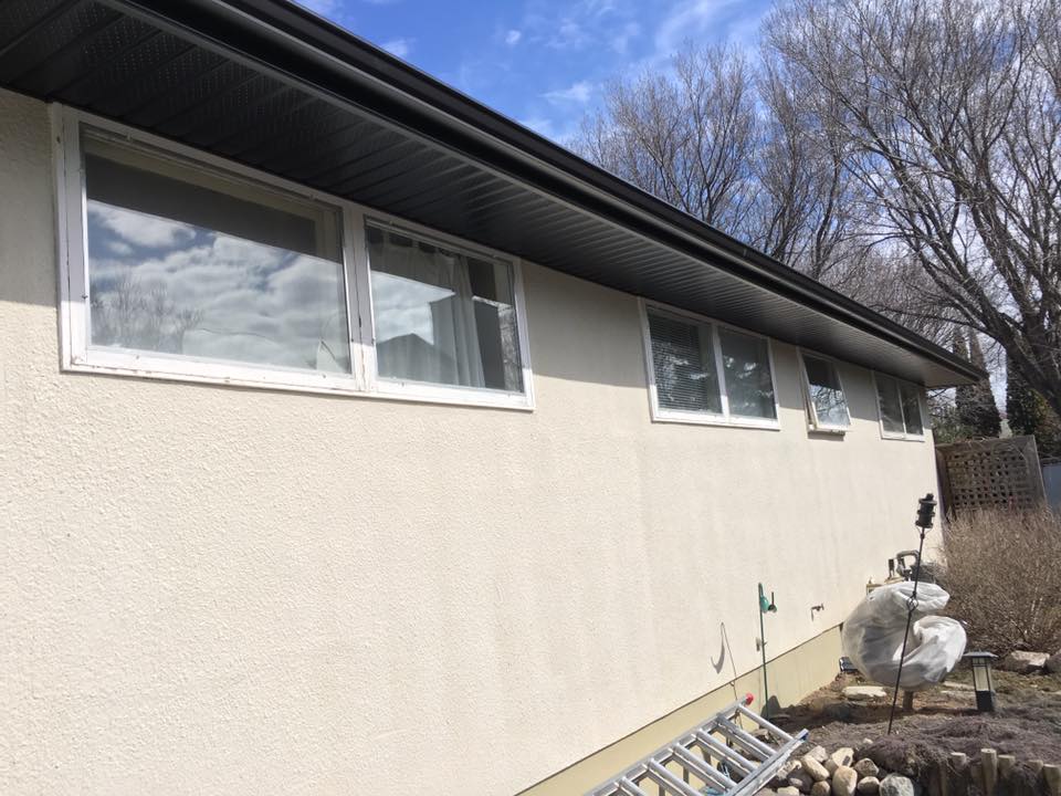 Overflow is usually caused by the eavestroughs themselves (not wide enough or deep enough for the roof surface) or the downspouts (insufficient number for the roof's surface). It is important to make sure there are enough downspouts to avoid this problem. For this purpose, you need to keep in mind that one downspout is enough to drain the equivalent of a 600 sq. ft. (56 m²) roof.